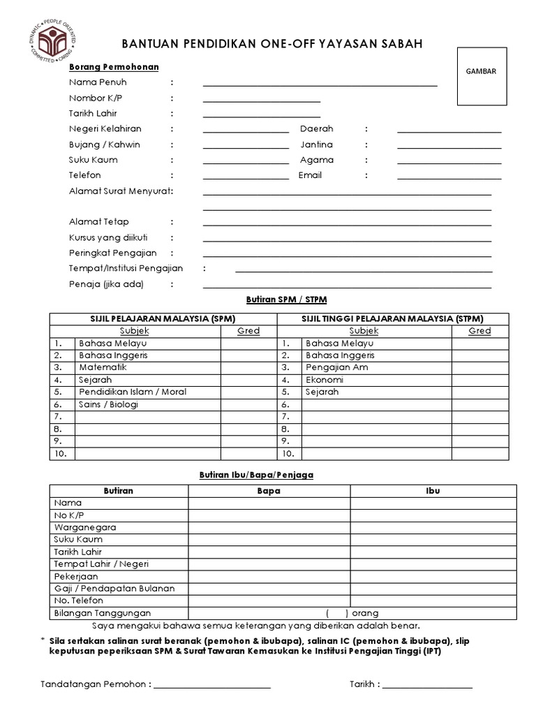 Borang Bantuan Pendidikan One Off Yayasan Sabah 2018 1 Pdf Pdf